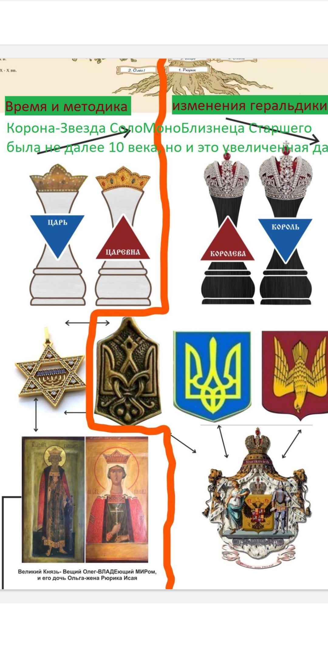 У ОЛега Пророка Великого Князя Мира Единого корона ещё шестигранная, не дАВида пастуха звезда, а ОЛега звезда, который есть тОЛуй чАНгАЗИт и он же тОЛиб, АВраам, АБр"А"Гун(Ибрагим). А крест пришел в геральдику только в Рюрико- Романовский купол расколотый на 2 половинки и только это появление 2 консулов римской модели, вместо АВгура Мира Единого. То есть иСуС это не сын Вещего ОЛега- АВгустейшего, а внук через дочь ОЛьгу- мАРию- тМАРу- сАРу- сАВскую- ЕлизАВету1. дАВид- Рюрик не цАзАр Мира, а пастух, его сына Юродивого- младшего не короновали 72 АпоСтола БиБлейских, которые есть 72 Торных Гаонов они же 72 Коранных Сподвижников "А"Духов определяемых как старший сыновей от старших сыновей с Волей Всевышнего.