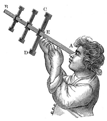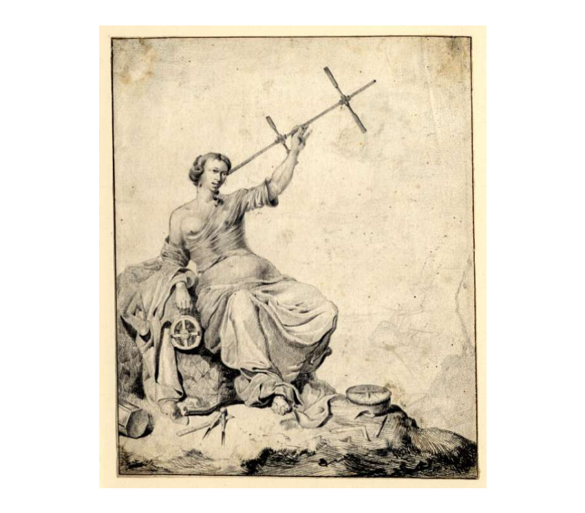 Поскольку поперечины якобштаба были съёмными, встречаются изображения этого инструмента и с двумя перекладинами, идентично патриаршему (лотарингскому) кресту. На илл. 7 изображена женщина, символизирующая навигацию. Как поясняется на сайте Британского музея, где представлена эта картина [23], в левой руке женщины находится якобштаб с двумя перекладинами, в правой – астролябия. Обратим внимание, что астролябия здесь напоминает хризму.