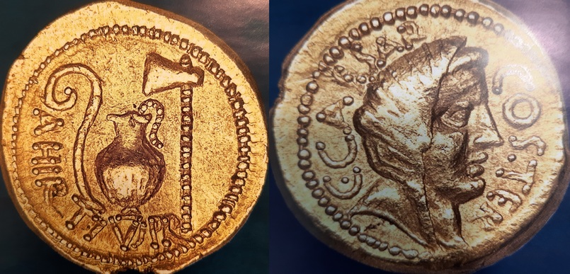 «Одним из главных пунктов проникновения христианства на территорию Киевской Руси был византийский город-порт Херсон. В Херсоне в VIII–XII вв. крестом с рогами якоря у основания украшались мраморные капители христианских храмов … Здесь же археологи находят в большом количестве керамические изделия с клеймами в виде якоря или синтетического изображения якоря и креста … В X–XII вв. якорь и крест постоянно изображались на монетах византийского Херсона, но не вместе, а на разных сторонах монет. Особенно интересны в этом отношении анонимные монеты с монограммой «ро» X–XII вв . Многие исследователи видят в этих изображениях якорей на монетах только монограммы правителей» [18, с. 124].