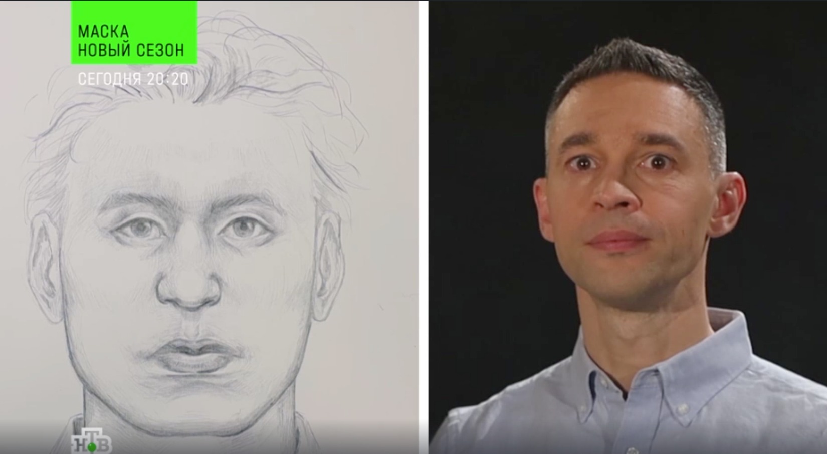 Ведущий решил провести эксперимент. Используя метод компьютерной томографии и 3D печать, он изготовил свой собственный череп и отдал его антропологам на реконструкцию, естественно, не сказав, чей это череп. Результат получился такой: