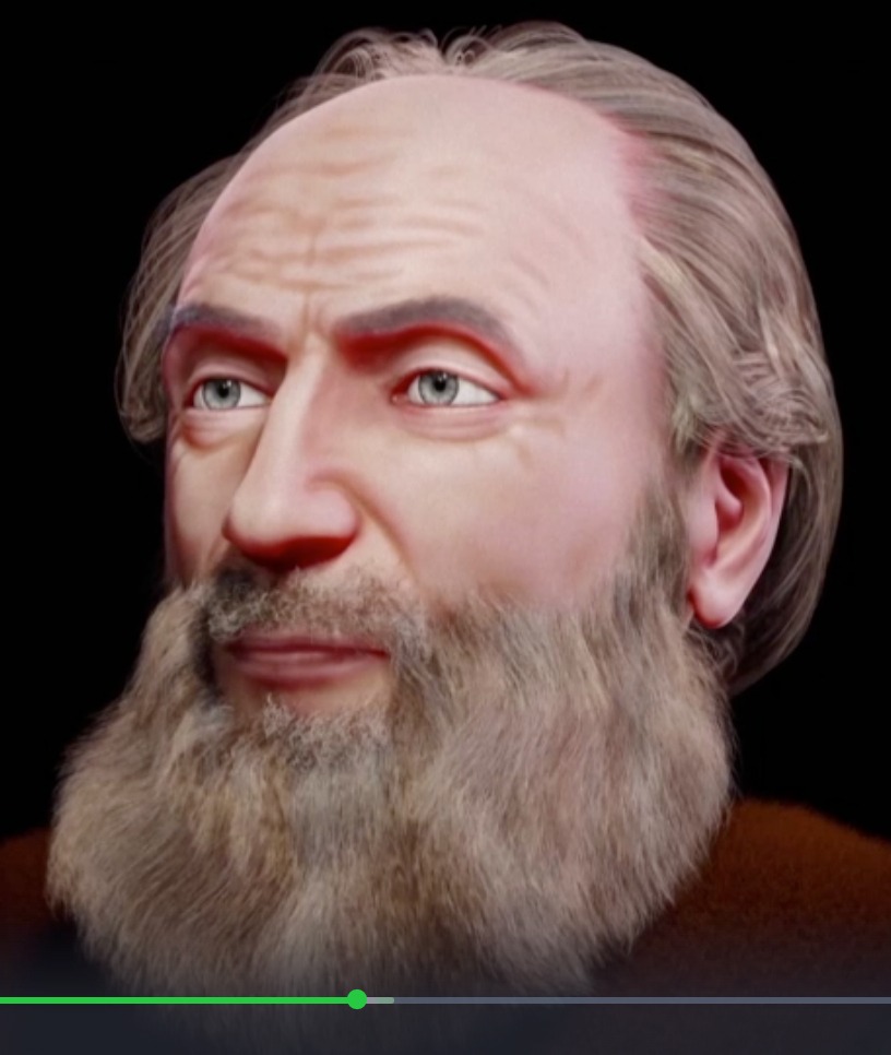 Ведущий решил провести эксперимент. Используя метод компьютерной томографии и 3D печать, он изготовил свой собственный череп и отдал его антропологам на реконструкцию, естественно, не сказав, чей это череп. Результат получился такой:
