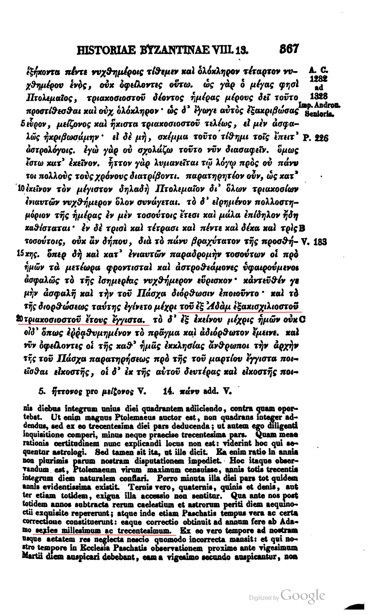 Я читал Григору, понятно, что в переводе. Очень приятное впечатление - человек умный, рассудительный, со знанием дела. Григора - это реальная зацепка. Властарь - это по-моему позже и Властарь - это переписчик, кажется. А вот Григора - это первоисточник рассуждений, именно он пишет про ошибку в определении Пасхи и именно он предложил патриарху исправить Пасхалию. Очень интересно был бы почитать абсолютно точный русский перевод Григоры.