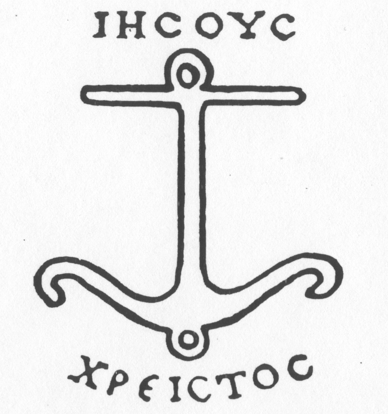 «Среди монограмм Иисуса Христа первых веков нашей эры обращает на себя внимание монограмма с буквами «альфа» и «омега» по сторонам. Понятно, что первая и последняя буквы греческого алфавита символизируют здесь Начало и Конец всего сущего. Буквы эти начертаны в монограммах в соединении с крестом в верхней части. При этом «омега» поразительно напоминает якорь… Не означает ли это, что появлению здесь последней буквы греческого алфавита – «омега» – предшествовал культовый знак якоря , представляющий собой нижнюю часть якорного веретена с рогами в виде трезубца, подобного, собственно, «ω». Такой символ якоря, с учётом его культового значения, вполне мог быть символом конца пути морского или сухопутного путешествия, вообще земного пути…» [18, с. 120].