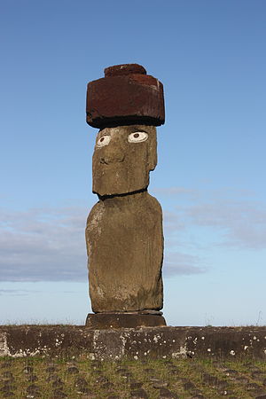 Когда норвежский исследователь Тур Хейердал в 1956 г. расспрашивал аборигенов, кто поставил эти фигуры, те сказали, что их делали местные жители, но с момента, когда изготовление истуканов прекратилось, уже прошло несколько поколений. Тем не менее, их отцы объясняли им, как они делаются. Статуи изготавливались из лёгких базальтовых пород, и их несложно было перемещать по острову [29]. Видимо, фигуры делали с целью облегчить прибытие кораблей, которые нечасто посещали остров Пасхи – самый удалённый от большой земли населённый остров в мире. Выполнение ориентиров именно в виде человеческих лиц было обусловлено, по-видимому, тем, что такой знак невозможно было спутать с каким-то случайным камнем, имевшем симметричные формы (см. илл. 12).