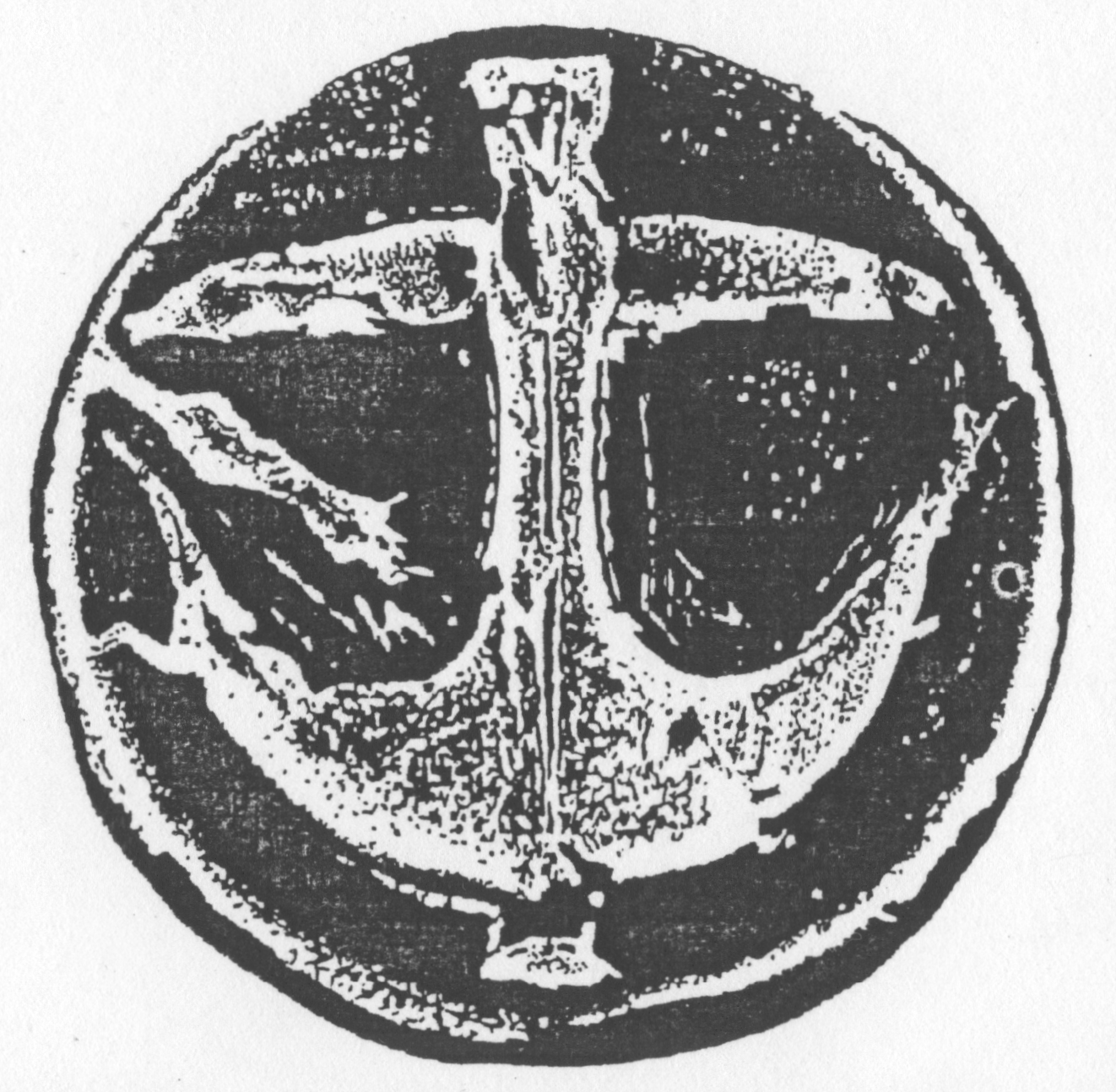 Раннехристианский крест представлял собой изображение якоря со штоком (такой тип креста называется в литературе «якорный крест»). Множество образцов таких крестов, в том числе и с надписью «Исус Христос» приведены в работе Г.И. Шаповалова (илл. 8) [18], который сообщает, что якорные кресты имели место в геральдике Киевской Руси X-XI вв., а также на свинцовых печатях Киева и Новгорода X-XII вв. «Якорь – символ надежды – был атрибутом морского бога этрусков, Нетуна», отмечает в свою очередь А.Б. Снисаренко [16, с. 169].
