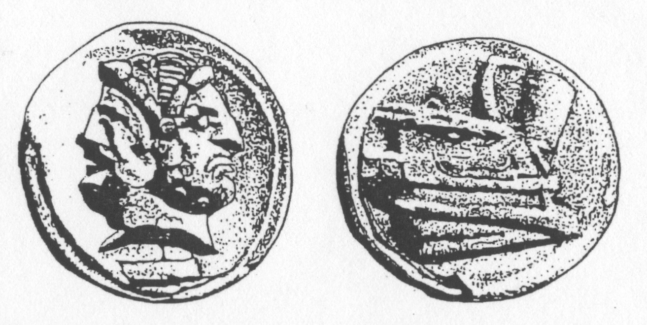 «В X – начале XI вв. в Киевской Руси при князьях Владимире, Святославе и Ярославе чеканятся знаменитые монеты с загадочными для исследователей «двузубцами» и «трезубцами»» [18, с. 124]. По мнению Шаповалова, разделяющего догадку, высказанную в 1861 г. И.А. Бартоломеем, этот символ, именуемый также «знаком Рюриковичей», представляет собой изображение деревянного якоря, окованного металлом, что подтверждается наличием кольца для продевания каната. Обратим внимание на то, что над якорем имеется маленький крест, а с обратной стороны таких монет присутствует изображение Христа или св. Георгия (илл. 9).