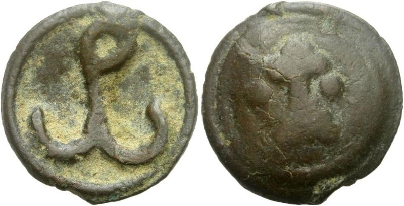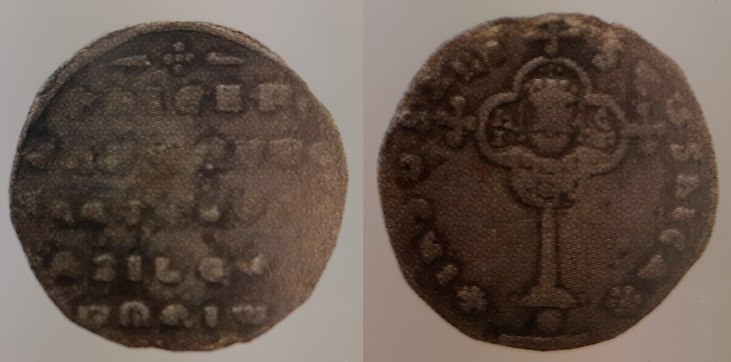 «Одним из главных пунктов проникновения христианства на территорию Киевской Руси был византийский город-порт Херсон. В Херсоне в VIII–XII вв. крестом с рогами якоря у основания украшались мраморные капители христианских храмов … Здесь же археологи находят в большом количестве керамические изделия с клеймами в виде якоря или синтетического изображения якоря и креста … В X–XII вв. якорь и крест постоянно изображались на монетах византийского Херсона, но не вместе, а на разных сторонах монет. Особенно интересны в этом отношении анонимные монеты с монограммой «ро» X–XII вв . Многие исследователи видят в этих изображениях якорей на монетах только монограммы правителей» [18, с. 124].