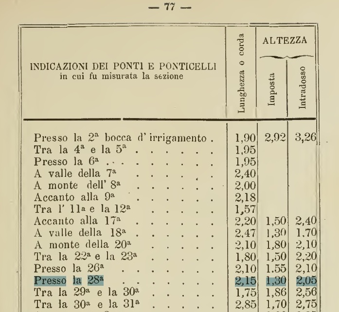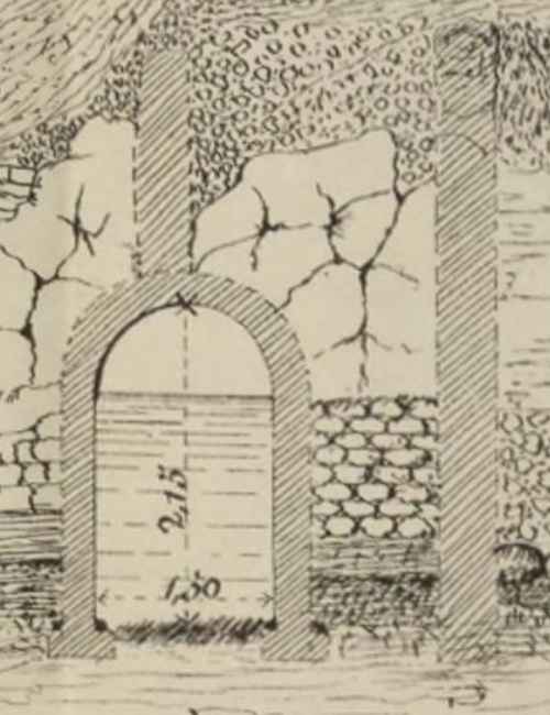 "В случае, когда на этом участке канала, точно рядом с амфитеатром, было построено вентиляционное отверстие, поперечное сечение было тщательно продумано так, как если бы оно было выполнено при раскопках. Из этого разреза ясно, что дно канала ниже на 0,50 уровня дороги в этом месте города. Более того, из этого очевидно, что древний акведук, принадлежащий описанной сети, проходил через северную полосу Помпеи."