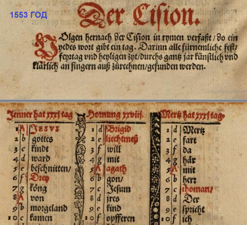 в латинском варианте 1 января называется "обрезание господне", а в немецком -"новый год"