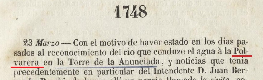 2 апреля - Вследствие приказа, который я получил от Вашего Превосходительства 28 числа прошлого года, 30 числа я прошел через часть людей этих пещер: и начал работу над новыми раскопками в Торре Анунсиада, и вчера я вернулся к посещению работы и обнаружил фабрики в двух частях, которые я начал раскапывать, и это те места, которые показались мне наиболее подходящими согласно различной информации, которую я получил, и я беру их, чтобы лучше руководить этой работой, в которой всего 12 человек, а еще 12 остались в этих пещерах вынужденными.