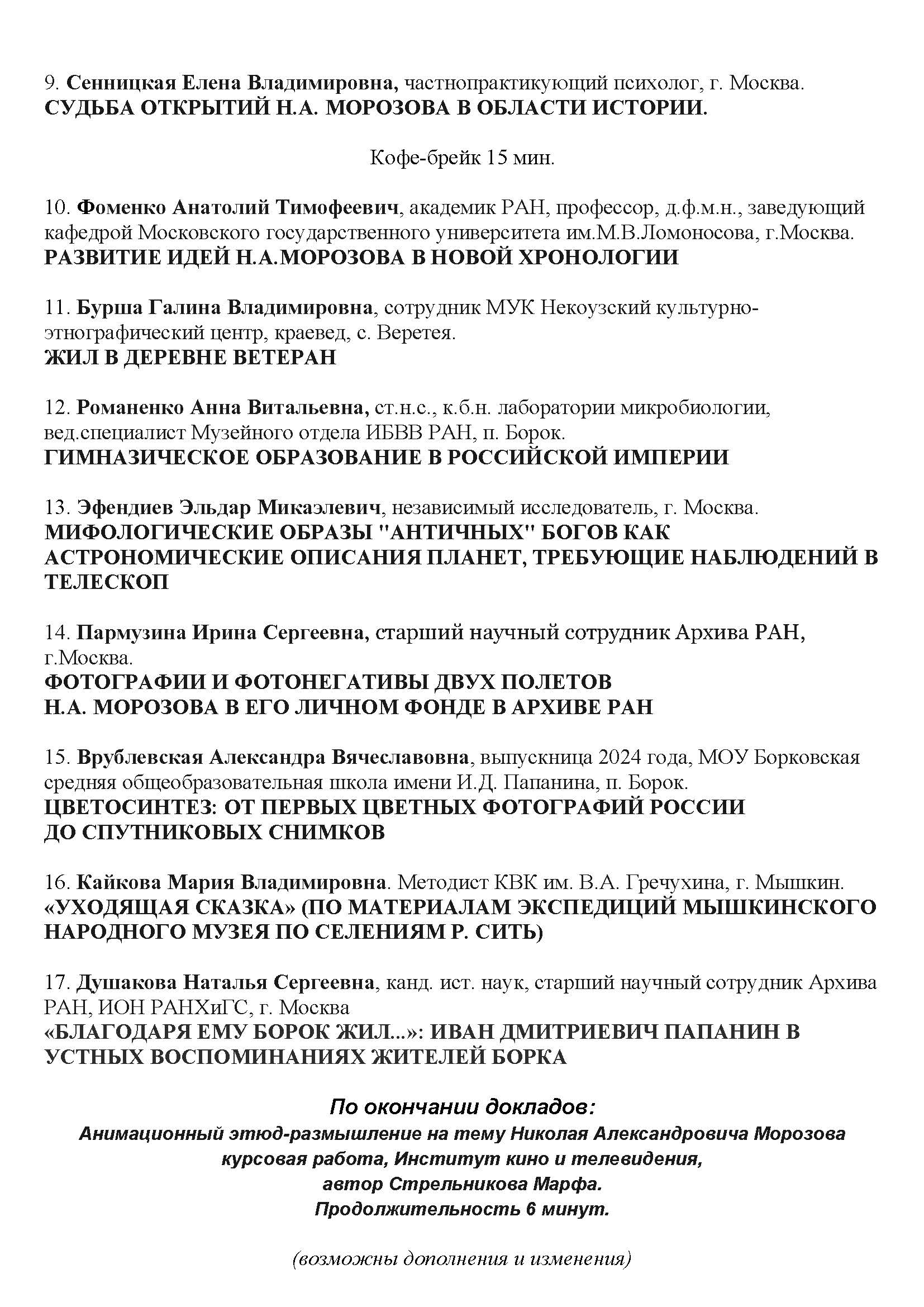 Морозовские чтения 2024. 170-летие Н.А.Морозова