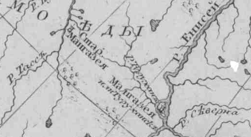 но у Ремизова и на карте "Старой Сибири" из "Сибирская История с самого открытия Сибири до завоевания сей земли Российским оружием" изд. 1774 года Новая Мангазея находится где-то на современном острове Большой Шар на берегу реки Енисей.