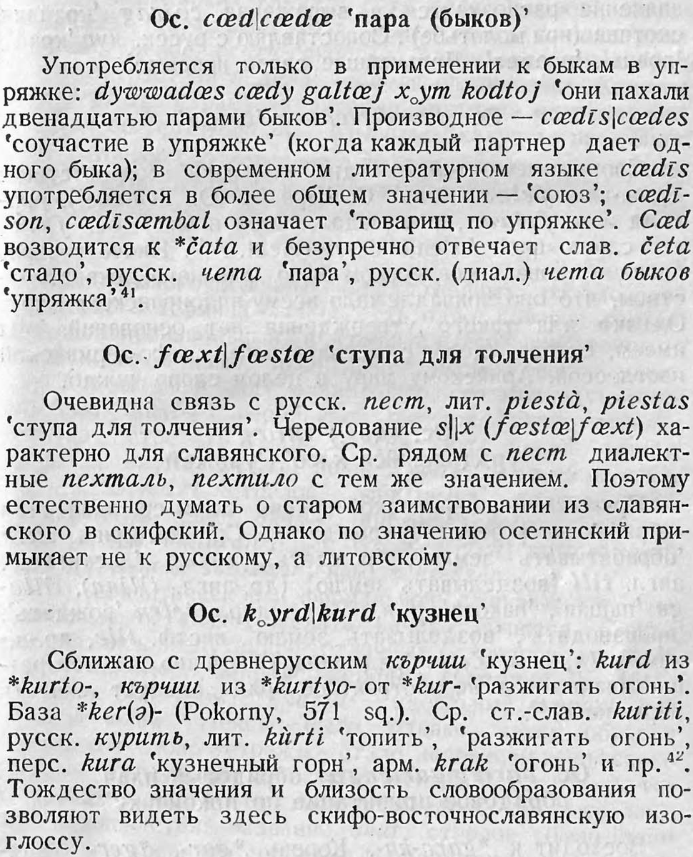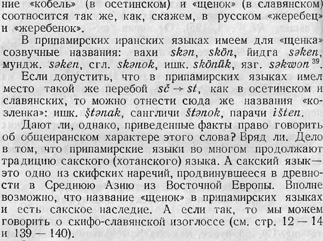 Для начала я приведу общие русско-осетинские скифские изоглоссы, затем посмотрим общих богов (стр. 109), а затем общие выводы про осетин и славян (стр.134):