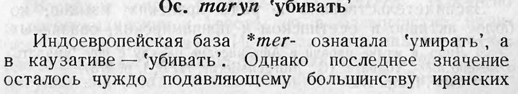 Однако, наконец-то дошёл я до основной монографии Абаева по данной проблеме, и как всегда оказалось, что В.И. Абаев писал совсем не то, что ему приписывают современные лингвисты и историки и особенно осетинские, которые на него ссылаются, когда утверждают, что русские и скифы не имеют ничего общего, и что русские не являются потомками скифов.